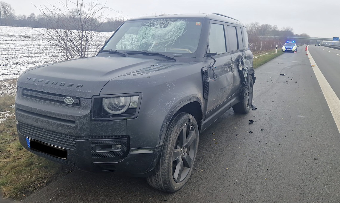 Die Fahrerin eines Land Rover aus Rüdesheim am Rhein (Rheingau-Taunus-Kreis) war auf der A31 zwischen Meppen-Nord und Twist unterwegs, als von einem vorausfahrenden Lkw eine Eisplatte abfiel und auf die Frontscheibe sowie das Dach des Land Rover einschlug.