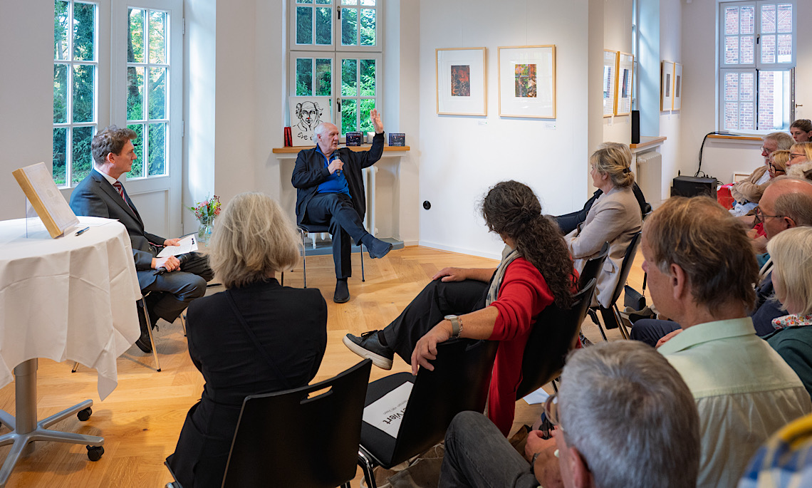 Gezeigt werden 32 grafische Arbeiten in Acryl auf Papier, die jeweils von den Liedern seines aktuellen Albums „Herman van Veen 80 – Live in Lingen“ inspiriert sind. Die Werke entstanden in enger Verbindung von Musik und Malerei und spiegeln die künstlerische Vielseitigkeit van Veens wider.