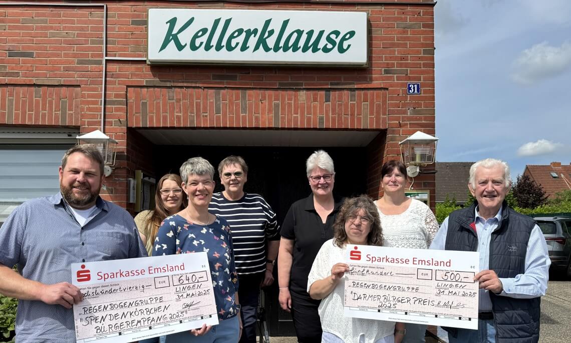 Heinz Wessling (re.) spendete das Geld für den Darmer Bürgerpreis an die Regenbogengruppe für das traditionelle Spargelessen.