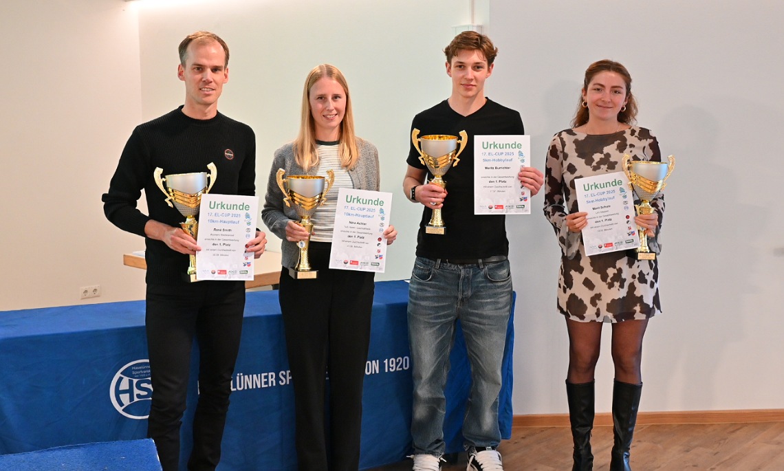 Im Mittelpunkt der Veranstaltung standen die Ehrungen der Siegerinnen und Sieger. Neben den „Durchläufern“, die an allen sieben Veranstaltungen teilgenommen hatten, wurden auch langjährige Finisher geehrt, die dem EL-Cup seit vielen Jahren treu geblieben sind.
