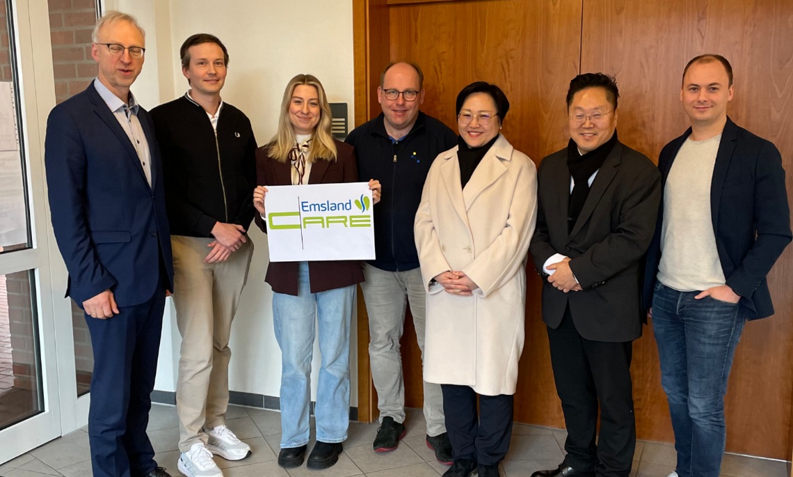 v.l.n.r.: Helmut Höke, Dr. med. Alexander Hagen, Marie Kamps, Dr. med. Sebasti-an Bork, Frau He-Ryung Jung, Dr. med. Jun-Young Jung, Oliver Franke. (Foto: Gemeinde Geeste)