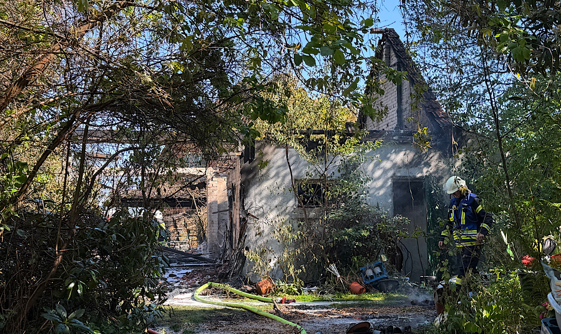 Aufgrund der räumlichen Enge und einem starken Pflanzen- und Baumbewuchs auf dem Grundstück gestalteten sich die Löscharbeiten nicht ganz einfach. Der Löschangriff erfolgte über die Rotdornstraße sowie über den Wietmarscher Damm. Die Straße musste während der Löscharbeiten für den Verkehr gesperrt werden. Nach rund anderthalb Stunden waren die Flammen schließlich gelöscht. Verletzt wurde niemand. Zur Schadenhöhe und Brandursache liegen noch keine Informationen vor. Die Polizei hat die Ermittlungen aufgenommen.