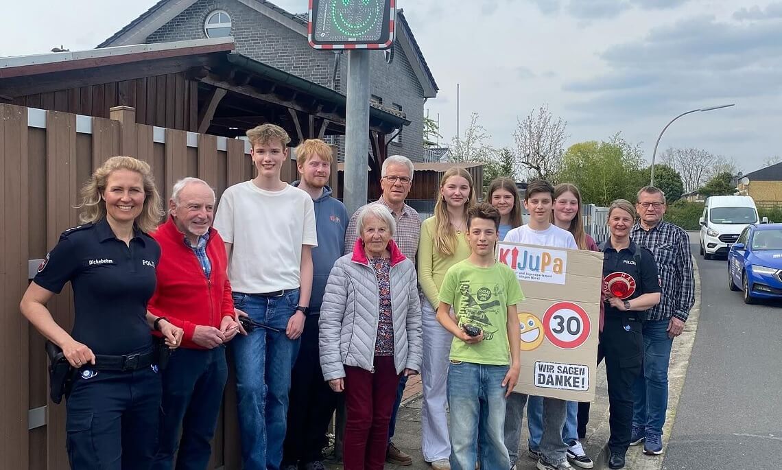 Dabei gingen der Gruppe einige Verkehrssünder in der Tempo-30-Zone ins Netz. Anstelle eines klassischen Strafzettels erhielten die Betroffenen von Mitgliedern des KiJuPas einen „Denkzettel“. Zusätzlich überreichte die Seniorenvertretung einen Kugelschreiber mit dem Hinweis, sich die mahnenden Worte direkt hinter die Ohren zu schreiben. Die Aktion sendet eine klare Botschaft: Rücksicht im Straßenverkehr schützt alle Verkehrsteilnehmern – insbesondere die Schwächeren.