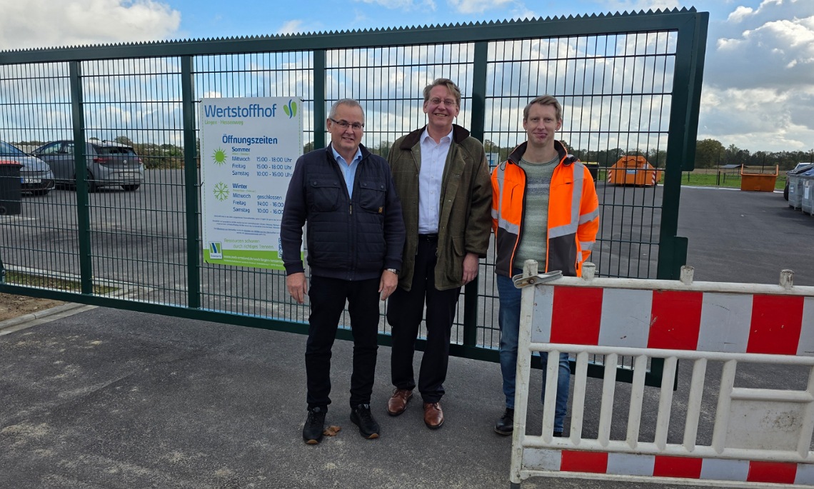 Lingen (pm). Mit dem neuen Wertstoffhof am Hessenweg in Lingen (Ems) betreibt der Landkreis Emsland nun vier Deponiestandorte und 47 Wertstoffhöfe. Landrat Marc-André Burgdorf und Heinz Bökers, Betriebsleiter des Abfallwirtschaftsbetriebs (AWB) Landkreis Emsland, nahmen heute die symbolische Eröffnung vor.