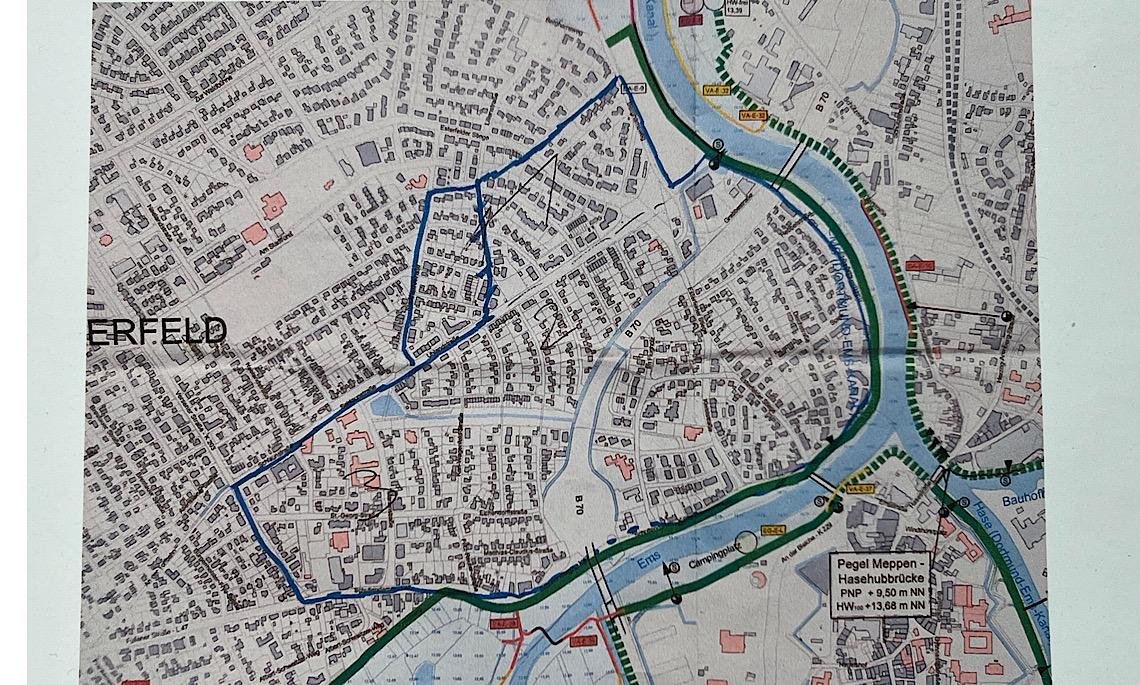 Meppen. Aufgrund der Hochwasserlage besteht eventuell Überschwemmungsgefahr für das Wohngebiet im Stadtteil Esterfeld im Bereich zwischen dem Berghamsweg und der Versener Straße. Die Stadtverwaltung hat am Mittwochabend einen Katastrophenschutz-Stab bei der Feuerwehr Meppen eingerichtet, in dem sämtliche Lagemeldungen zusammenlaufen und bewertet werden.