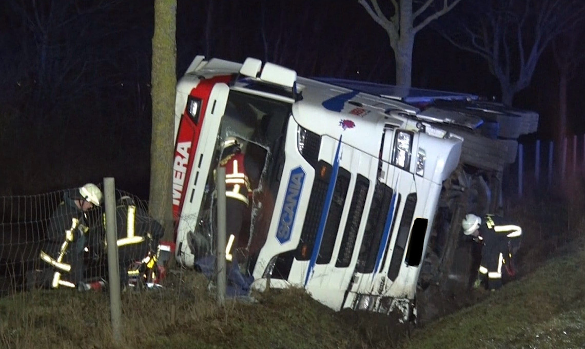 Der 54-Jährige wurde bei dem Unfall leicht verletzt und in ein Krankenhaus gebracht. Am Lkw entstand ein Sachschaden in Höhe von etwa 15.600 Euro.