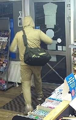 Er konnte 880 Euro erbeuten. Anschließend flüchtete der Täter zu Fuß in unbekannte Richtung. Während der Tat wurde der Täter videografiert. Der gesuchte Täter war ca. 180 cm, hatte braune Augen und braun-graue Haare. Zudem trug er eine schwarze Maskierung, einen weiß-beigen Sportanzug und graue Sneaker.