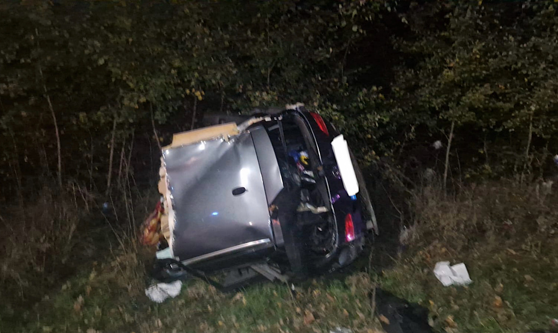 Es kam zum Zusammenstoß beider Fahrzeuge wobei eines der Fahrzeuge auseinandergerissen wurde. Der 54-jährige Passatfahrer und seine 47-jährige Beifahrerin wurden schwer verletzt. Der 25-jährige Golf-Fahrer und sein 23-jähriger Beifahrer erlitten leichte Verletzungen. Beide Fahrzeuge waren nicht mehr fahrbereit, der entstandene Sachschaden wird auf etwa 20.000 Euro geschätzt.