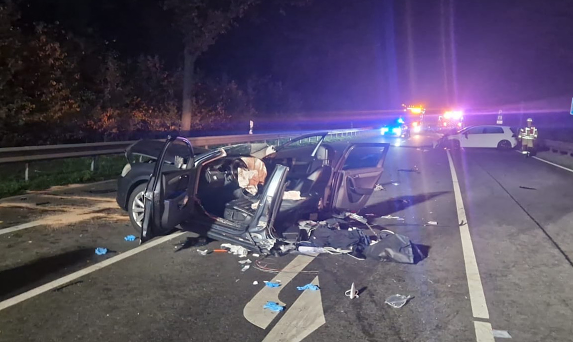 Es kam zum Zusammenstoß beider Fahrzeuge wobei eines der Fahrzeuge auseinandergerissen wurde. Der 54-jährige Passatfahrer und seine 47-jährige Beifahrerin wurden schwer verletzt. Der 25-jährige Golf-Fahrer und sein 23-jähriger Beifahrer erlitten leichte Verletzungen. Beide Fahrzeuge waren nicht mehr fahrbereit, der entstandene Sachschaden wird auf etwa 20.000 Euro geschätzt.