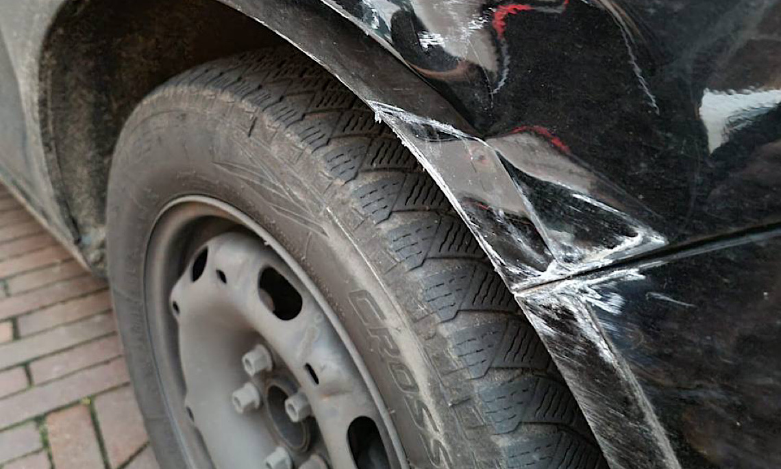 Ein schwarzer VW Polo wurde im vorderen Bereich beschädigt (Foto: Privat)