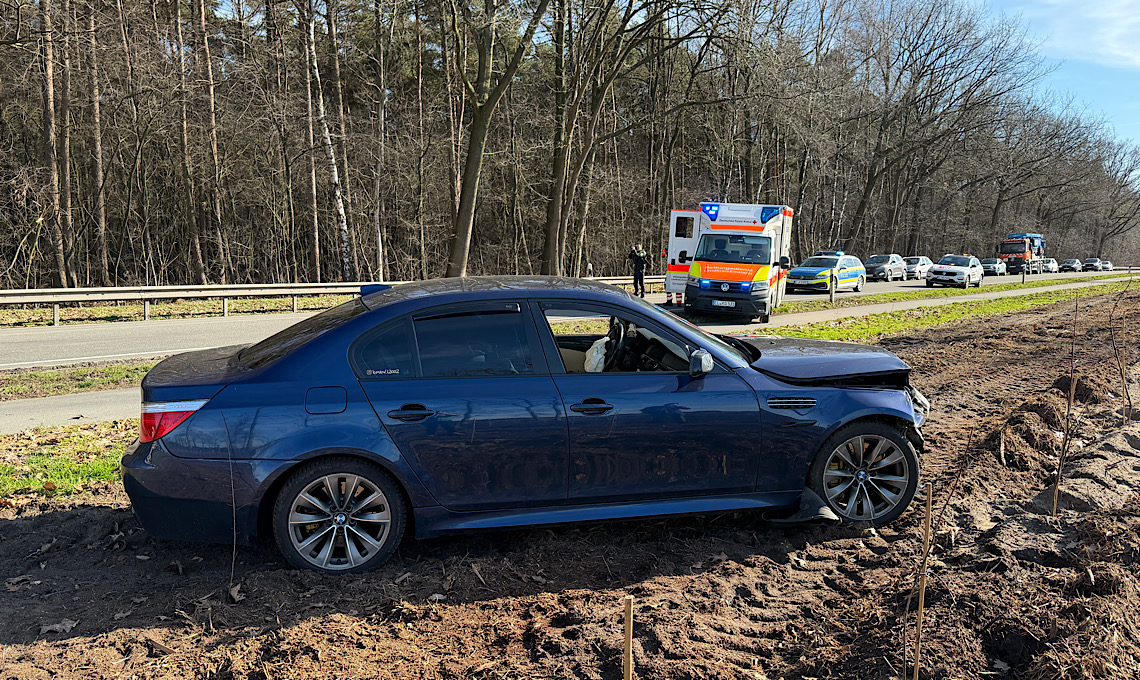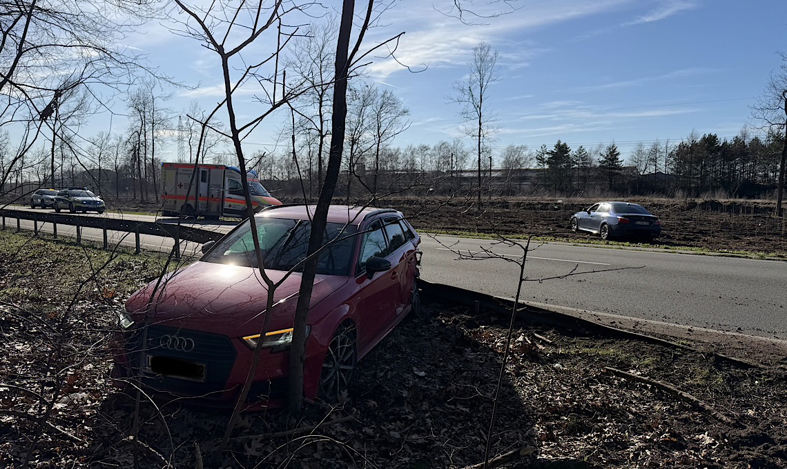 Der Audi landete hinter der Schutzplanke zwischen mehreren Bäumen. Die Airbags lösten aus. Der BMW schleuderte auf ein Feld mit frisch bepflanzten kleinen Bäumen. Beide Insassen wurden rettungsdienstlich betreut und in ein Krankenhaus transportiert.