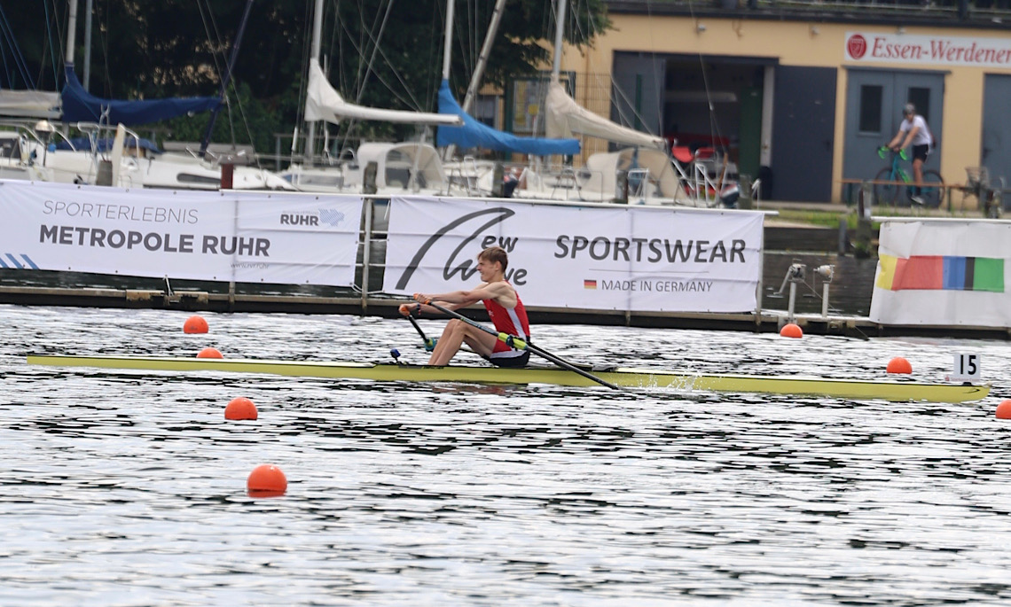 Daniel, der im Wassersportverein Meppen trainiert, musste sich am Donnerstag zunächst mit 22 weiteren Spitzenruderern aus der gesamten Bundesrepublik im Einer einem der vier Vorläufen über 2000m stellen, wobei jeweils der Erste eines Vorlaufes direkt in das Halbfinale einzog und weitere sich über die sogenannten Hoffnungsläufe qualifizieren konnten, so Harald Hillers (WSV Meppen). Nach Absprache mit seinem Trainer Thomas Müller fuhr Daniel aus taktischen Gründen in seinem Vorlauf nicht auf Sieg, wurde kontrolliert Dritter und war damit für einen der Hoffnungsläufe, die am Freitag stattfanden, qualifiziert, den er als Sieger in einer Zeit von 08:29.86 min beendete.