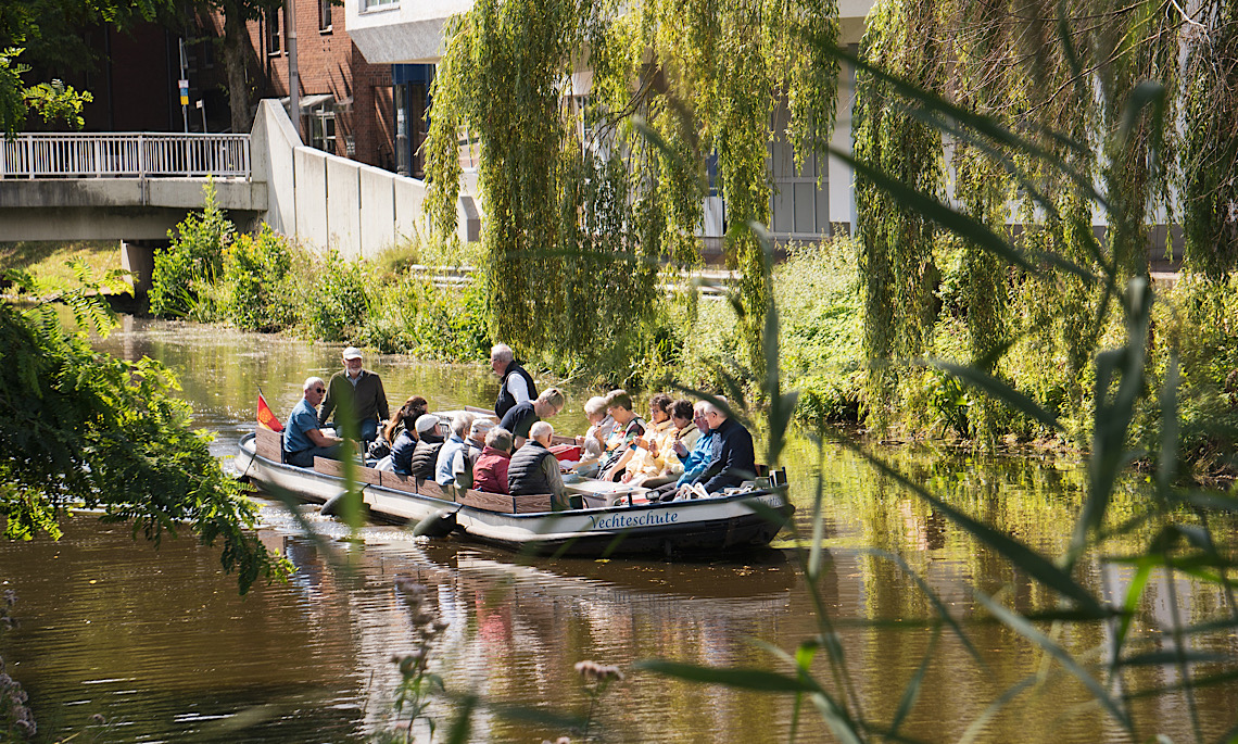 Ob einfach eine entspannte einstündige, öffentliche Stadtrundfahrt, ein Familienausflug, eine romantische Punschfahrt im Winter, eine exklusive Cliquentour oder auf Tour mit der gesamten Schulklasse und den Vechterangern – die Nachfrage nach den umweltfreundlichen Touren auf der Vechte ist ungebrochen. Eine Übersicht aller Fahrtenangebote ist unter: www.vvv-nordhorn.de/nordhorn-erleben/bootsfahrten zu finden.