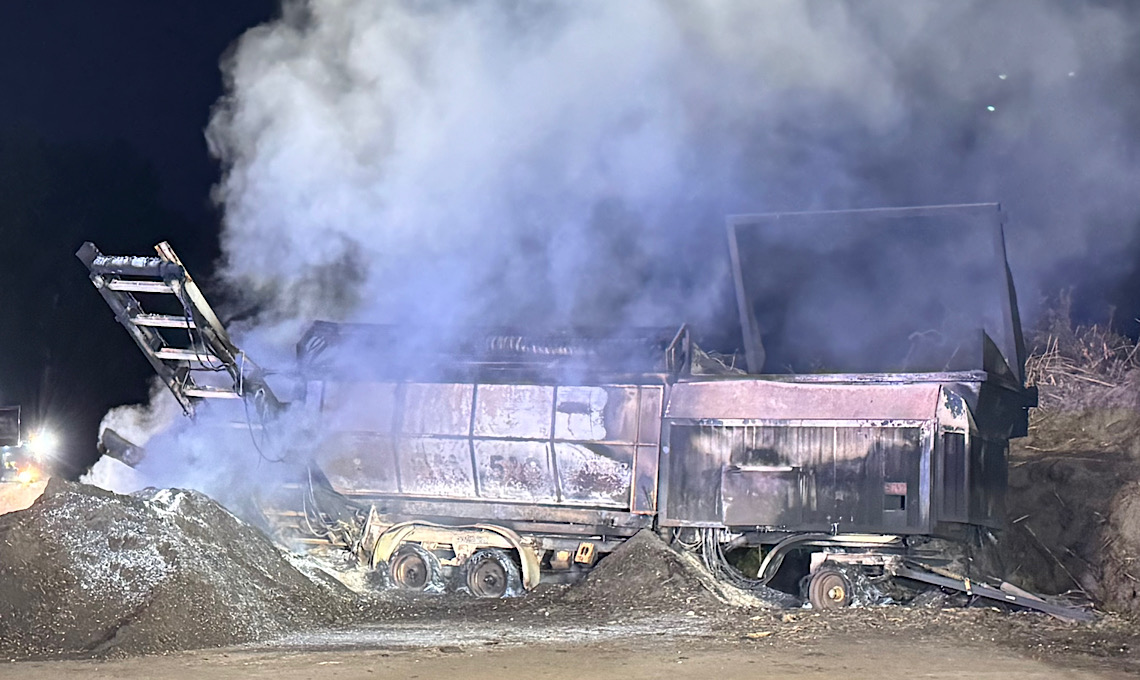 Der Alarm erreichte die Einsatzkräfte um 6:16 Uhr mit dem Stichwort „F3_Fahrzeugbrand“. Aus bisher unklarer Ursache stand hier eine Siebmaschine auf dem Gelände in Brand. Die Feuerwehr begann umgehend mit den Löscharbeiten.