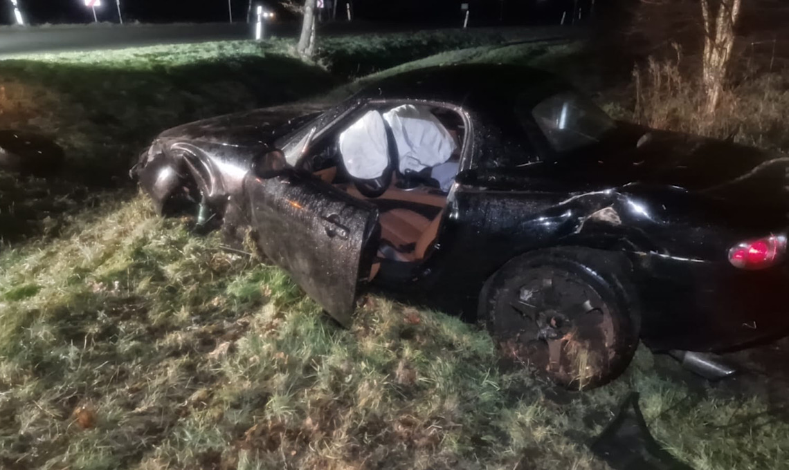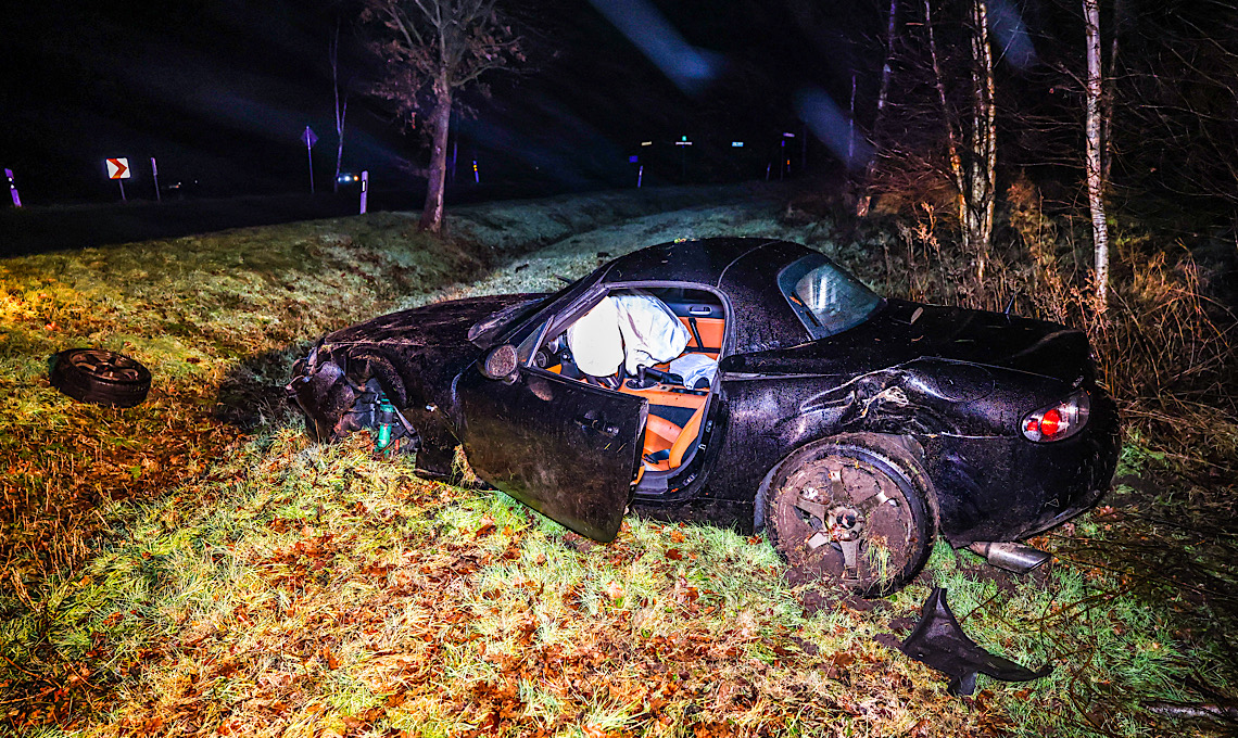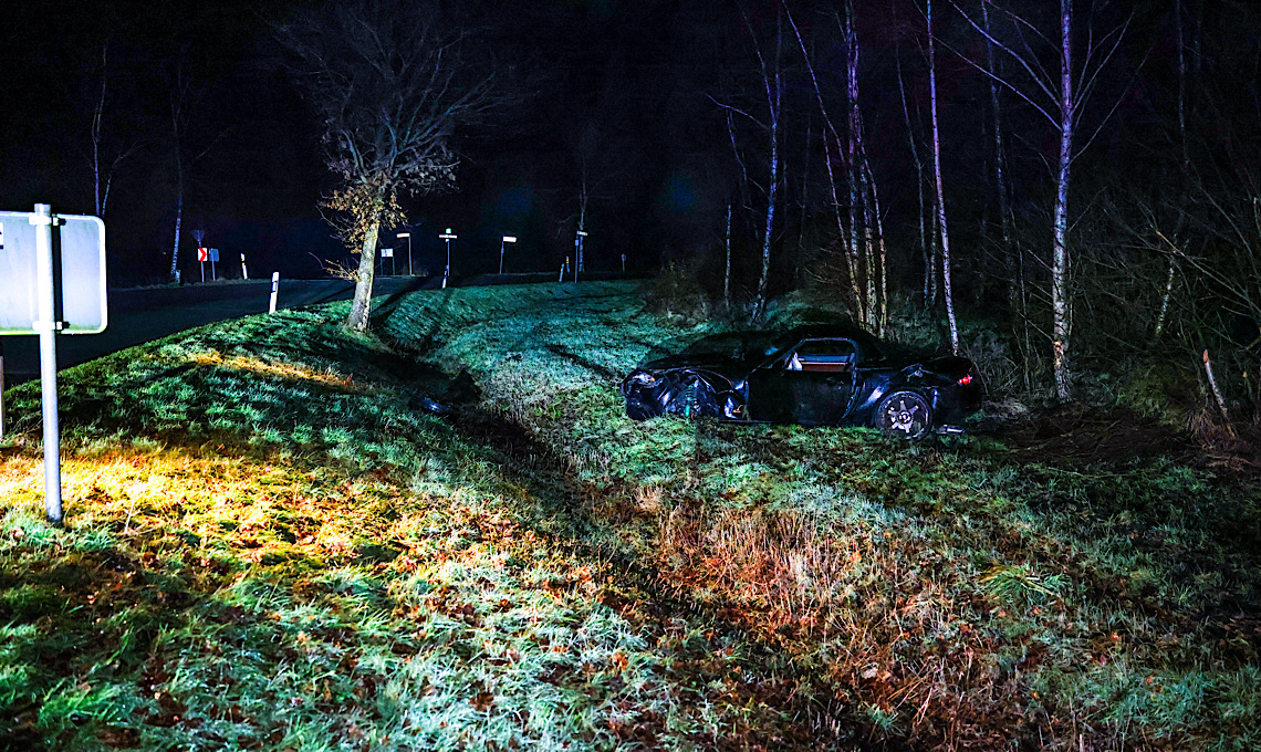 Das Auto kam in einer Linkskurve nach rechts von der Fahrbahn ab.