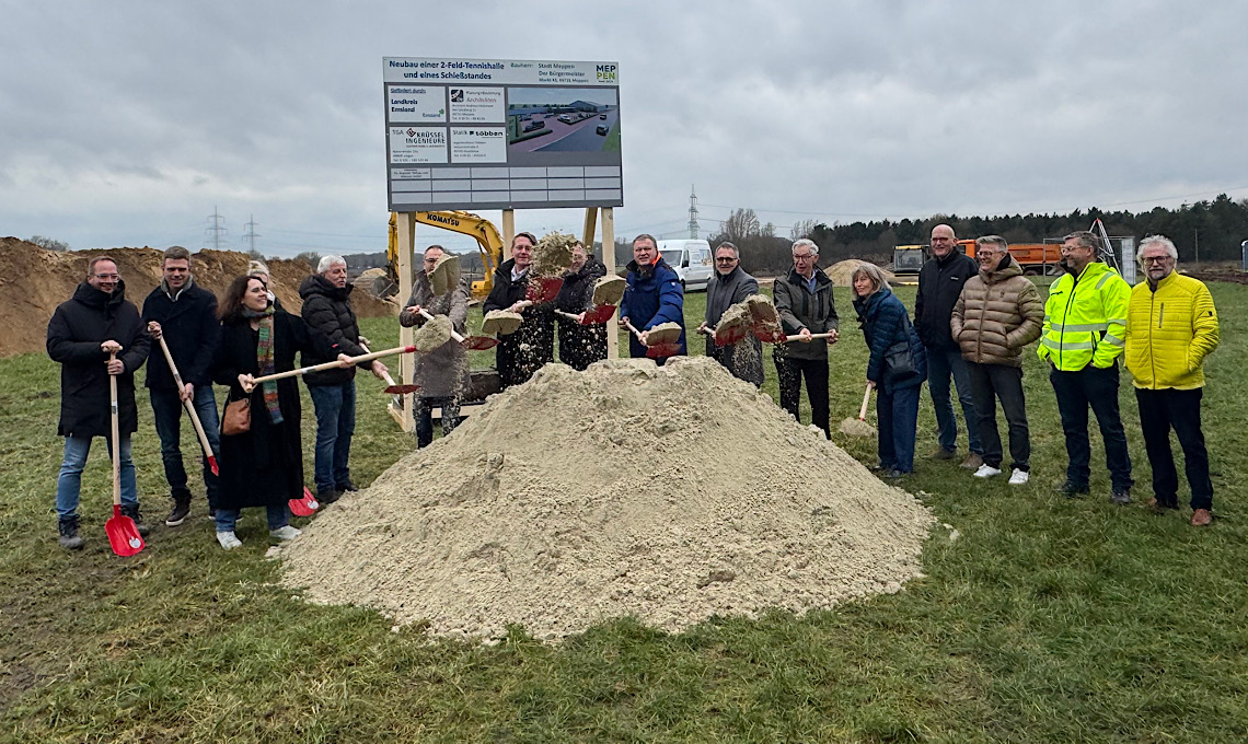 Die Architekturplanung stammt von Andreas Hülsmann vom Büro 2e Architekten. Bürgermeister Helmut Knurbein dankte allen Beteiligten, insbesondere den engagierten Vereinsvertretern der Arbeitskreise Tennis und Schießen, für die konstruktive Zusammenarbeit.