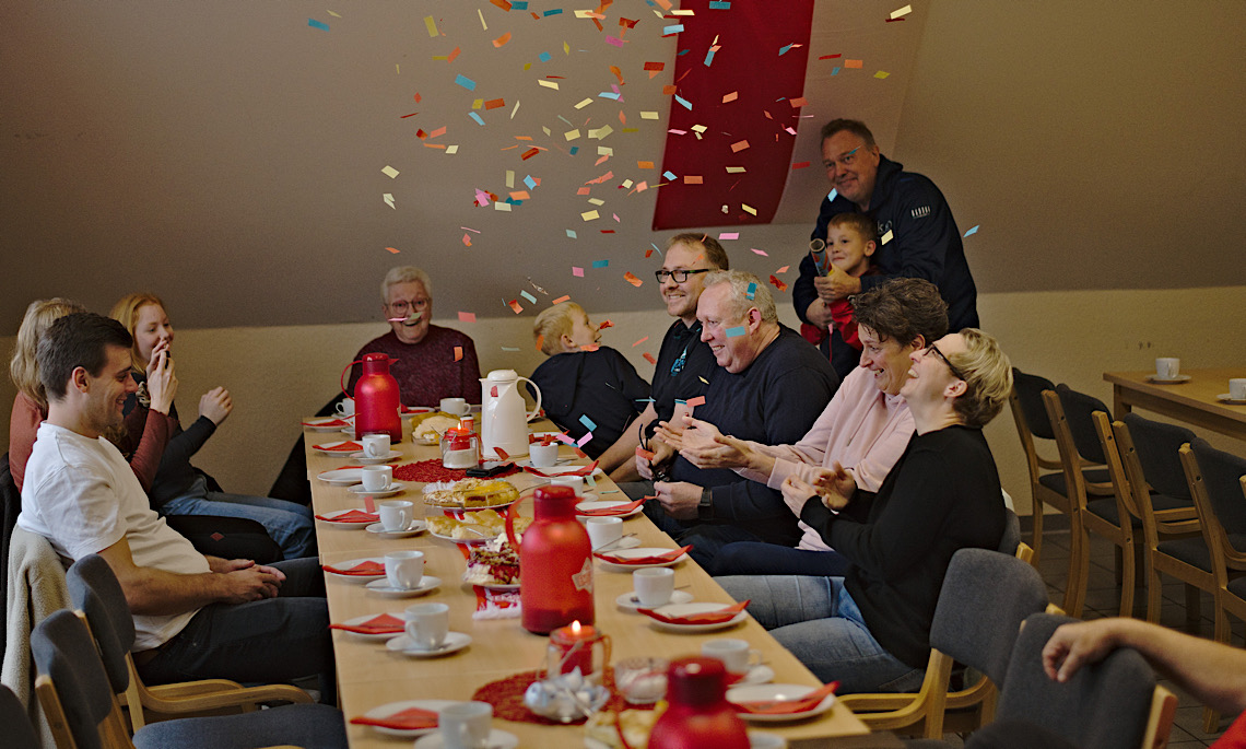 KSB-Präsident Michael Koop war persönlich vor Ort, um die Würdigung im Namen des Kreissportbundes Emsland vorzunehmen. Begleitet wurde er vom Vorsitzenden des NFV-Kreis Emsland, Heinz-Gerd Evers, der Arens im Vereinsheim ein Präsent überreichte. Im kleinen Kreis, gemeinsam mit Familienmitgliedern und Vereinsvertretern, wurde Hella Arens im Clubraum des VfL Emslage überrascht.